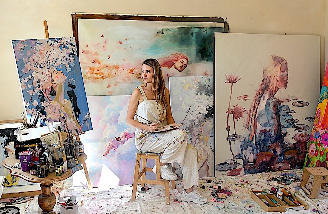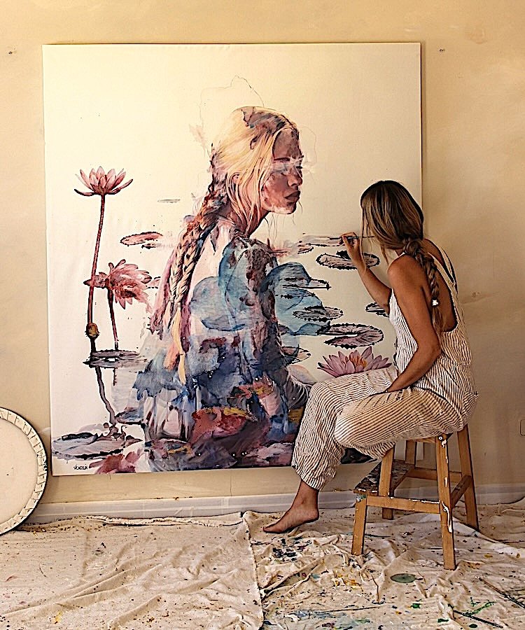 I’ve lived different lives before becoming an artist ; I studied a university degree in teaching in Madrid, I worked as a fashion model in my early 20s which made me live in three different continents, I also worked a lot of “normal” jobs while trying to find my path in life- but art was always there, tugging at my sleeve. I grew up between cultures and languages, I have Finnish-Swedish-German background but grew up in the south of Spain. Both my parents painted when I was a child, so I’ve been surrounded by art since I have memory, but then, I watched them give up on art and find more stable jobs. I kept telling myself the same would happen to me so I didn’t plan on becoming an artist. But somehow, creating has always been my way of making sense of the world, no matter if it’s through painting, writing or music. The real “journey” was realizing that art isn’t just something I do, but it’s my way of living.