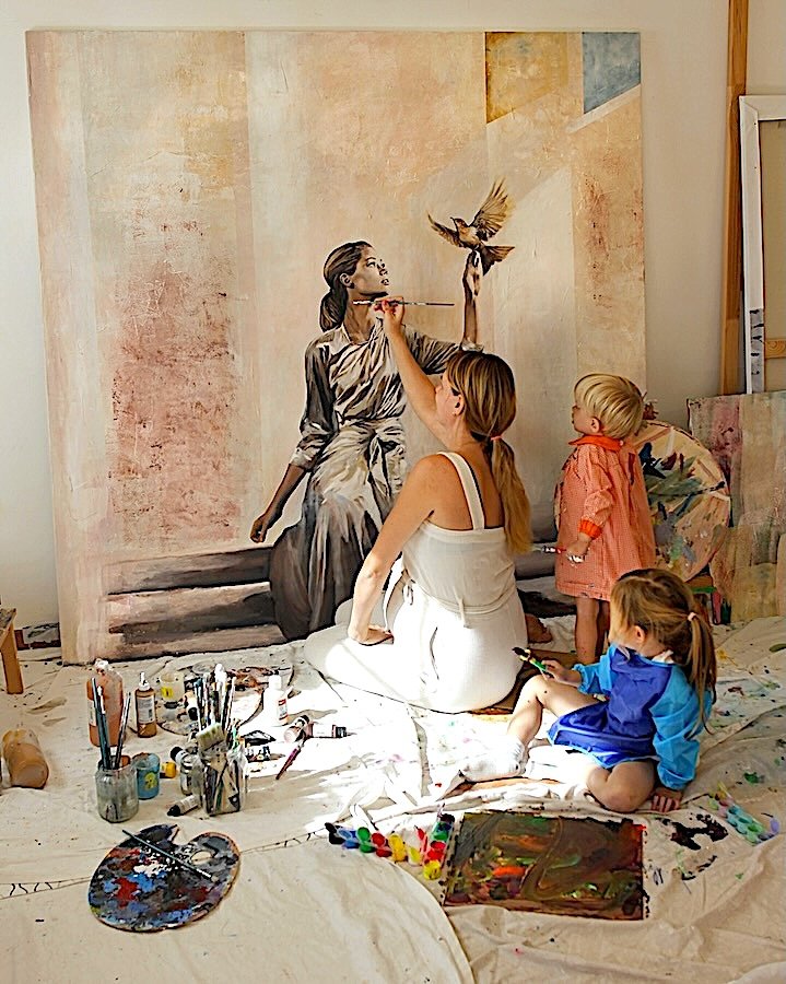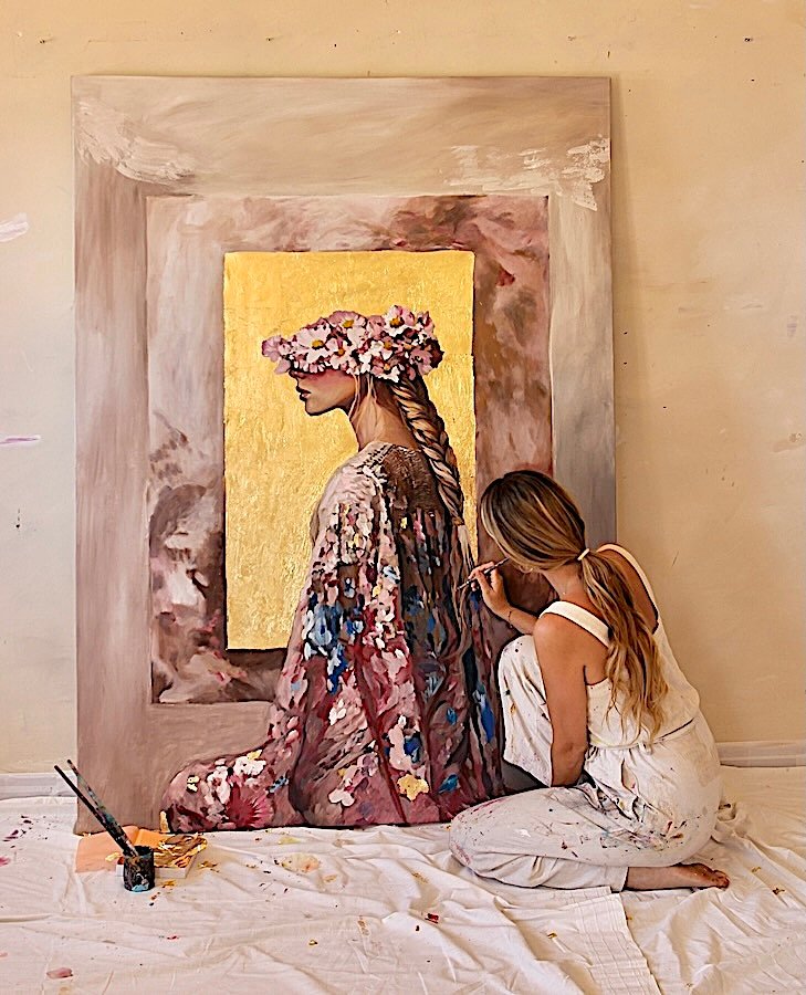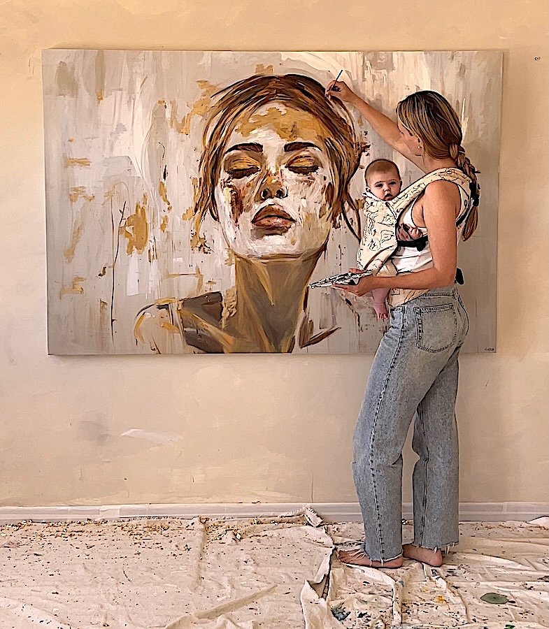 Yes, the pandemic. I had my first daughter in spring of 2020, so I was in the baby bubble when Spain went into lockdown. The world stopped, and suddenly I had no excuses left. I had been doing art as a “hobby”, and had just managed to organise one of my first exhibitions at a hotel in my city- thinking the pandemic would ruin the exhibition, but somehow the contrary happened: every painting there was sold. I remember delivering the paintings wearing a mask and gloves, praying not to catch covid because I had a newborn baby at home. I then chose to finally listen to that inner voice telling me to quit my office job and do only art full time. It was terrifying, but also the most alive I’d ever felt.