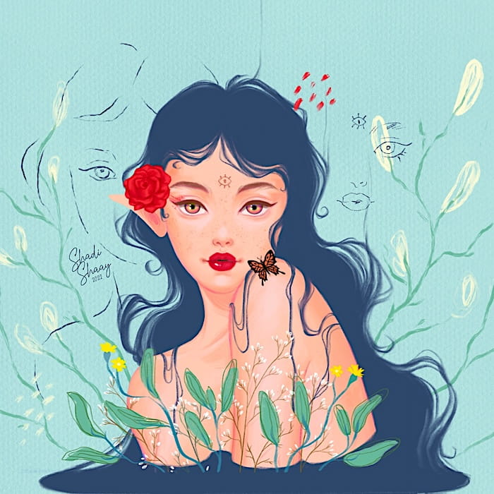Shadi Shaay (@shadishaay) creates art that carries a rare balance of softness and emotional depth. Drawing inspiration from nature, femininity, memory, and the quiet strength that can grow through vulnerability, she builds a visual world that feels both intimate and resonant. Her journey began in childhood and, over time, evolved into a distinctive artistic practice shaped by curiosity, resilience, and a deeply personal connection to self-expression.